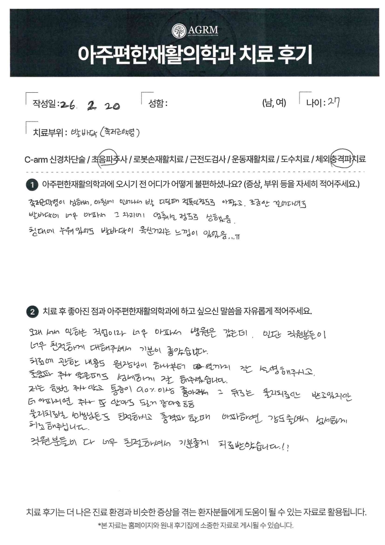 네이버 예약 자주하는 질문 환자분 자필 후기 환자 자필 후기 2026.03.09 환자 자필 후기 2026.03.09 환자 자필 후기 2026.03.09 환자 자필 후기 2026.03.09 환자 자필 후기 2026.03.09 환자 자필 후기 2026.03.09 환자 자필 후기 2026.02.11 환자 자필 후기 2026.02.11 환자 자필 후기 2026.02.11 환자 자필 후기 2026.02.11 환자 자필 후기 2026.02.11 환자 자필 후기 2026.01.12 환자 자필 후기 2026.01.03 환자 자필 후기 2026.01.03 환자 자필 후기 2026.01.03 1 →