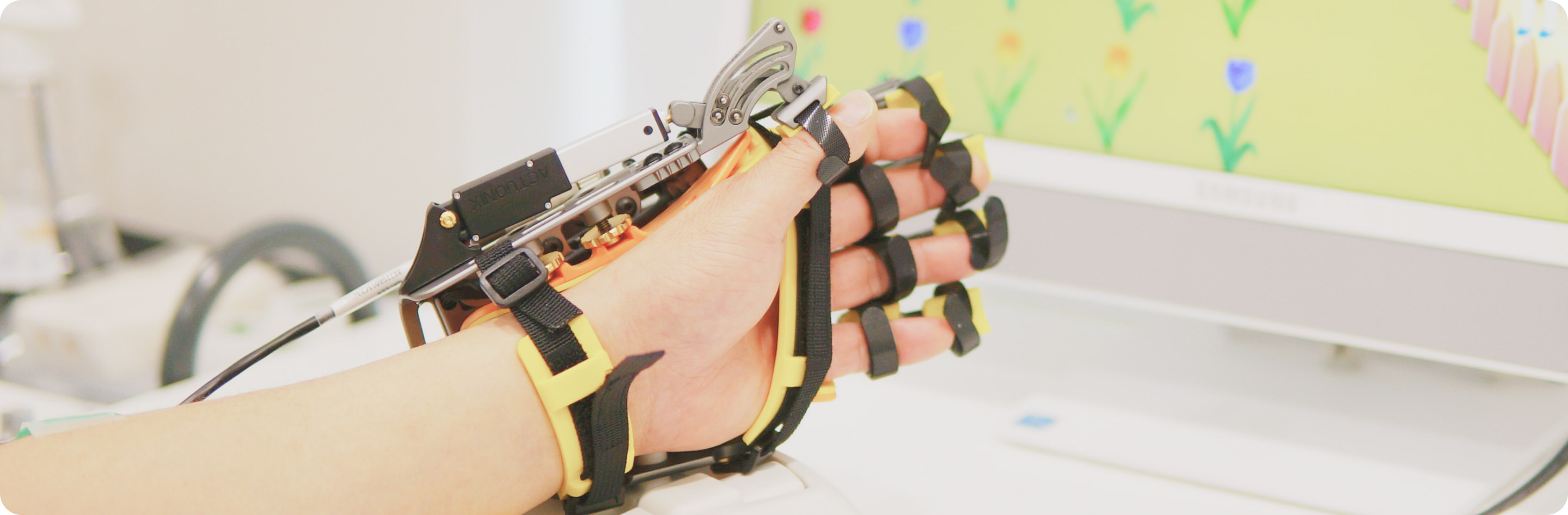 표면 근전도 신호(sEMG)를 감지하는 센서를 통해 근수축과 근전기 패턴을 파악하여 마비된 팔의 기능을 과학적으로 접근하고 정교하게 재활할 수 있습니다.