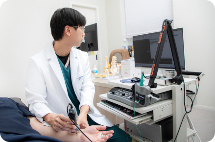 힘줄, 인대, 신경 등 연부 조직을 실시간으로 보면서 정확한 위치에 주사가 가능하며, 방사선 노출이 없어 안전하게 시술할 수 있습니다.