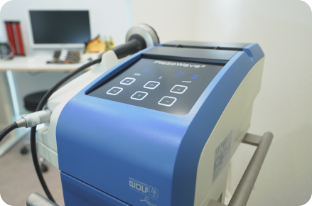 고에너지 역학적 충격파를 병변 부위의 관절 및 연부조직(인대, 건)에 정밀하게 집중 조사하여 국소적인 항염증 반응을 유도하고 세포 단위의 신진대사를 활성화하여 손상된 조직의 재생을 촉진하는 치료입니다.